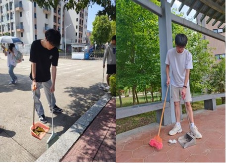 图2支部党员在校园、宿舍区清理垃圾