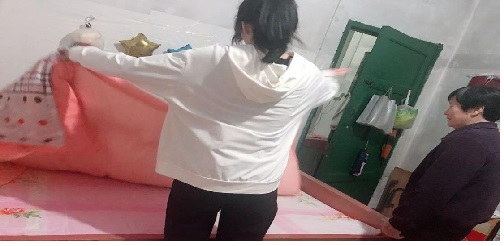 19物联网工程郭文娜通过力所能及的家务劳动,帮外婆整理了被褥,拖了地,洗了碗,感谢外婆十几年来对她的悉心照顾,只要在家,会经常来看望和帮助外婆的。