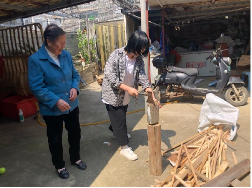 这是19动漫制作技术班的王佳莉第一次帮外婆劈柴,她感慨道,如今的煤气已经取代了过去小时候的烧柴火,但外婆却始终如一,吃着外婆做的香喷喷的柴火饭长大,对外婆充满敬意和感谢。