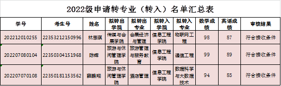 关于2022级本科员工转专业(转入)名单公示